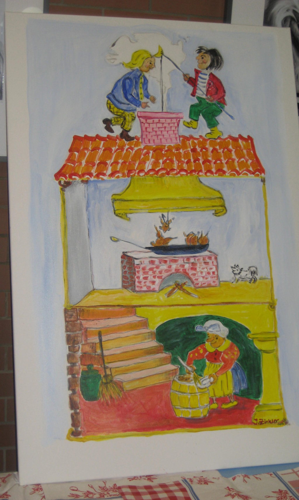 Erika Schüler als Witwe Bolte hat ihr armes Huhn am Haken.