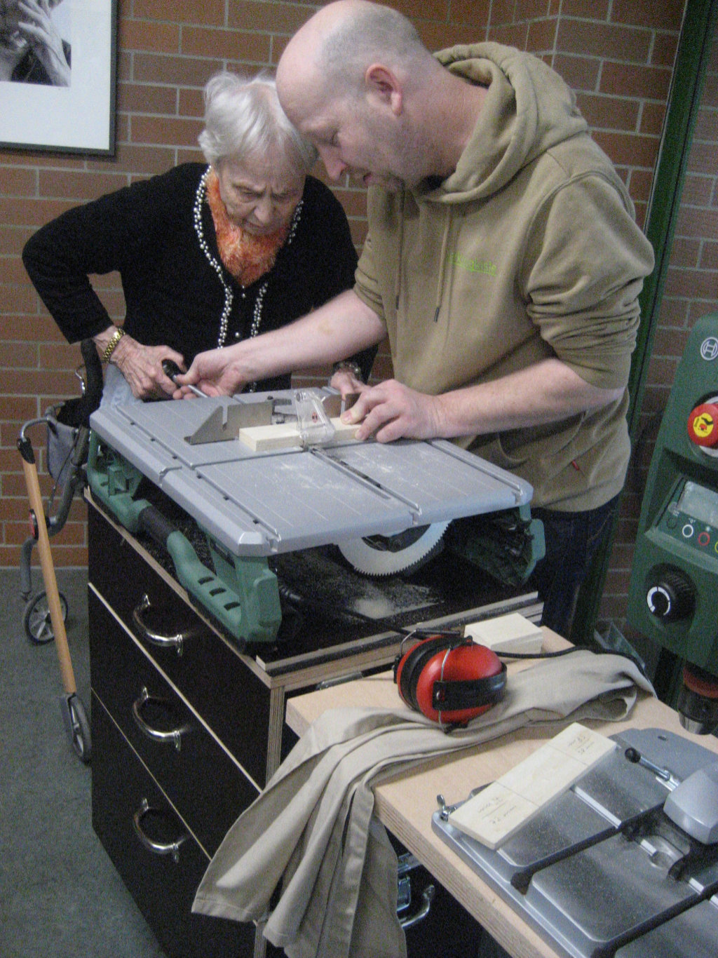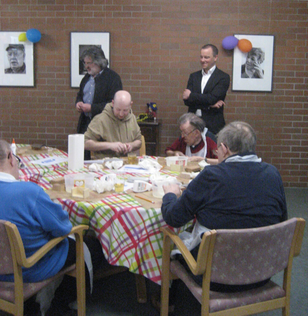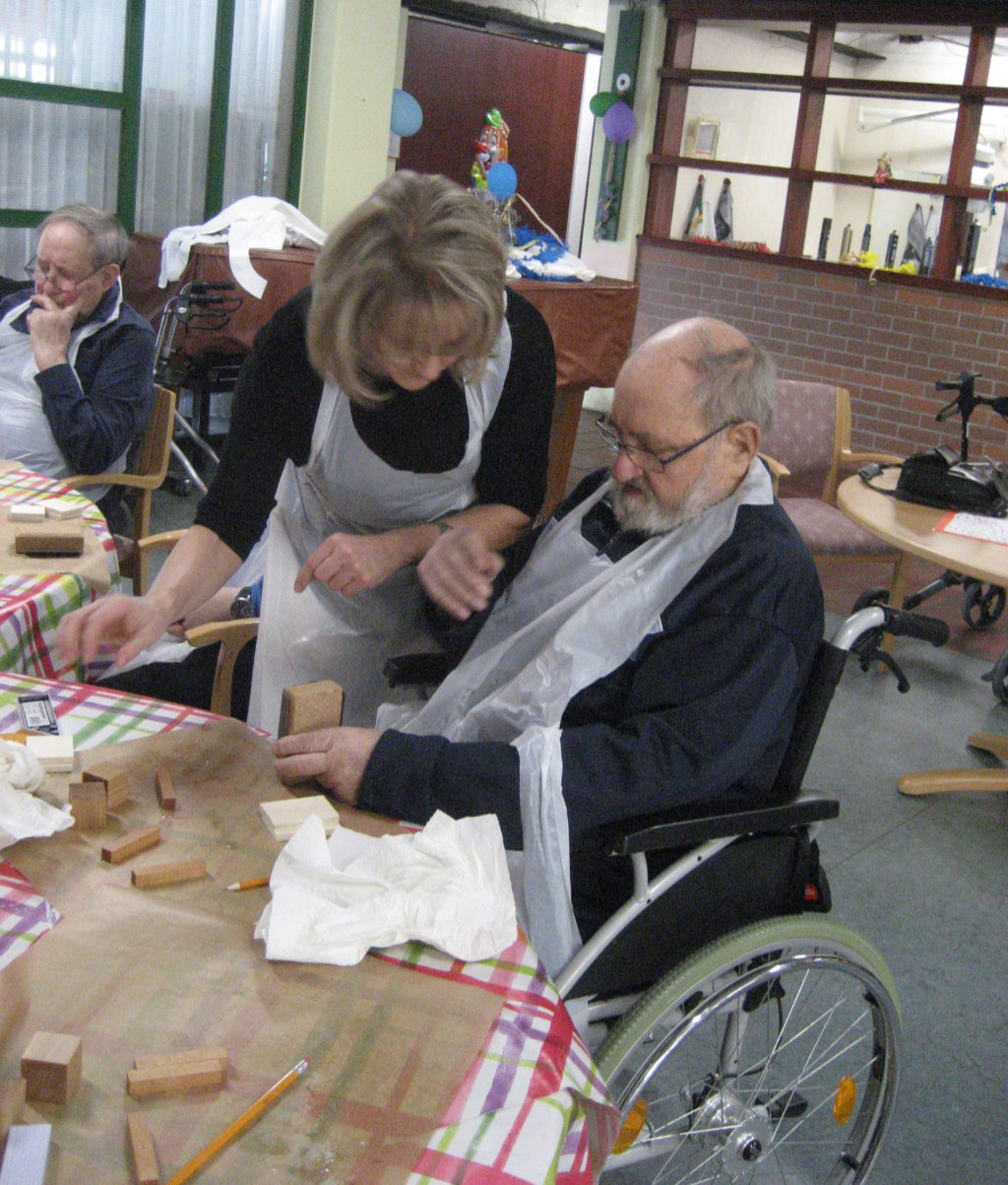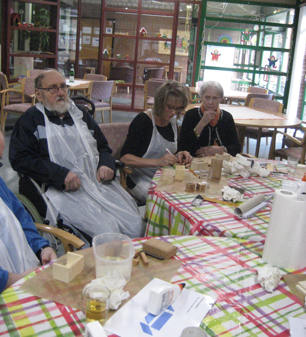 Anke Kohlstadt, Sozialer Dienst, hilft bei der Erstellung des Holz-Kalenders